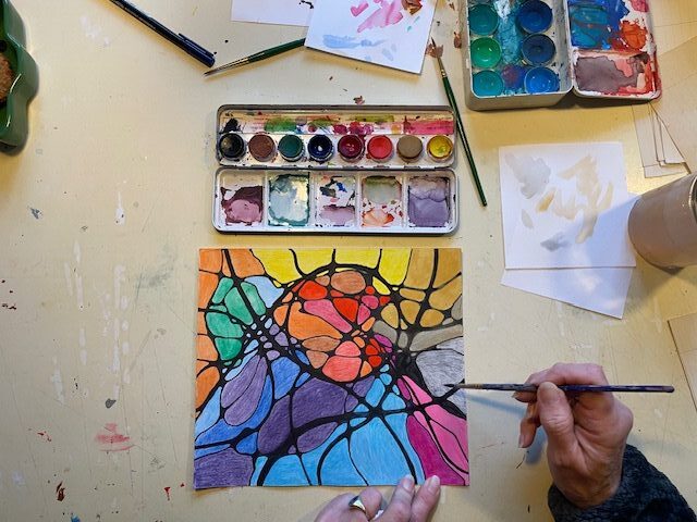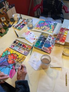 Deze trouwe donateur kwam voor een één op één sessie verinnerlijken doormiddel van tekenen en schrijven onder mijn begeleiding. Deze keer maakte ik gebruik van neurographic drawing. Een verhoudingsgewijs makkelijke manier om weg te blijven bij het resultaat en toch wezenlijk ergens uit te komen. Met name binnen in jezelf. Fijn ook als je denkt niet te kunnen tekenen. Het is als een soort actief mediteren; tijdens kun je alle kanten opschieten maar daarna heb je het cumulatief beter met je wezenlijke zelf. Het tekenen gebeurd voornamelijk in stilte.